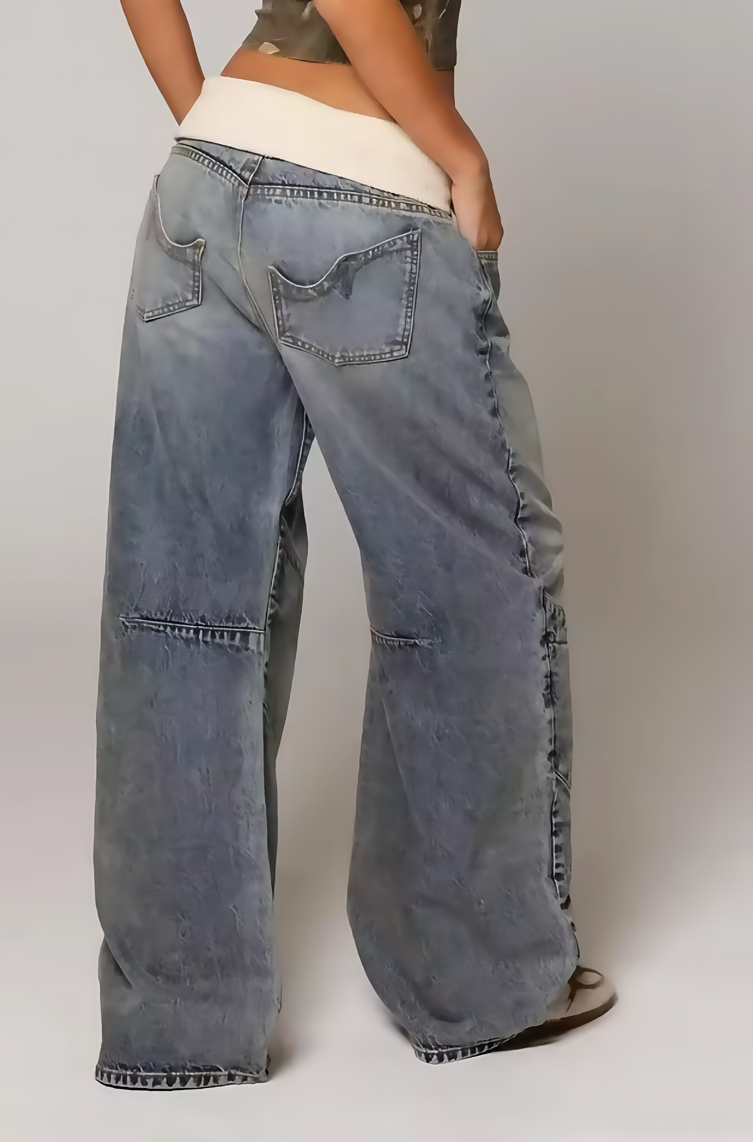 Coole, weit geschnittene Jeans mit auffälligen Nähten und lässiger Waschung. Perfekt für trendige Streetwear-Looks – bequem, stylisch und super kombinierbar.